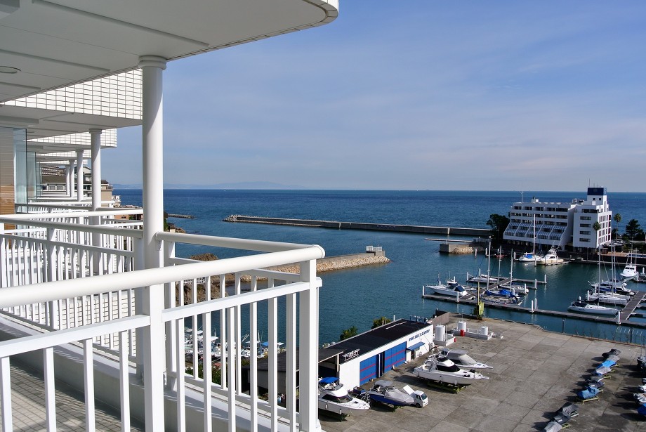 スイートルームにあるジャグジーにお湯を張り朝の海